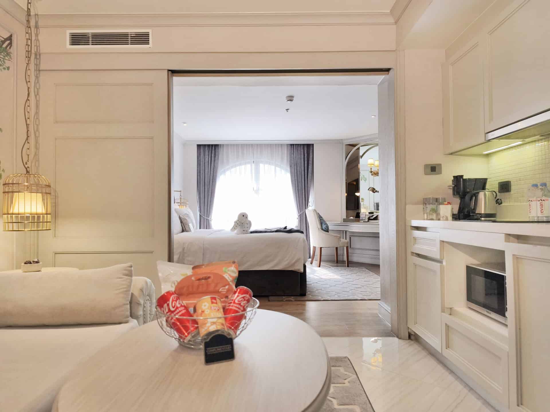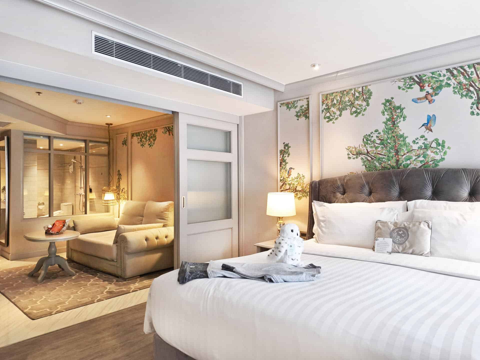 The Living Suite offers the comfort of a refined One Bedroom Suite, thoughtfully designed for couples and families. Enjoy a separate living space with sofa bed, an oversized king bedroom, and a well-equipped kitchenette. The spacious bathroom with shower and bathtub enhances the sense of relaxed, family-friendly living in Sukhumvit.